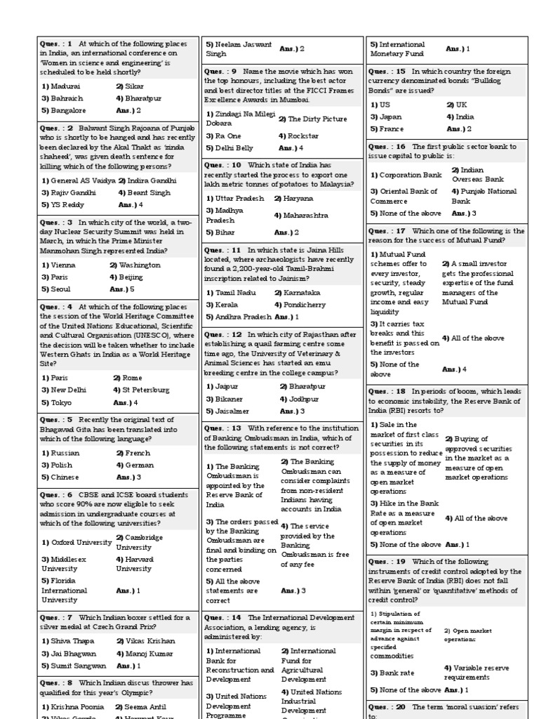 G.K. For April 19 To Aug 20, 2012 (5months G.K) PDF Reserve Bank Of