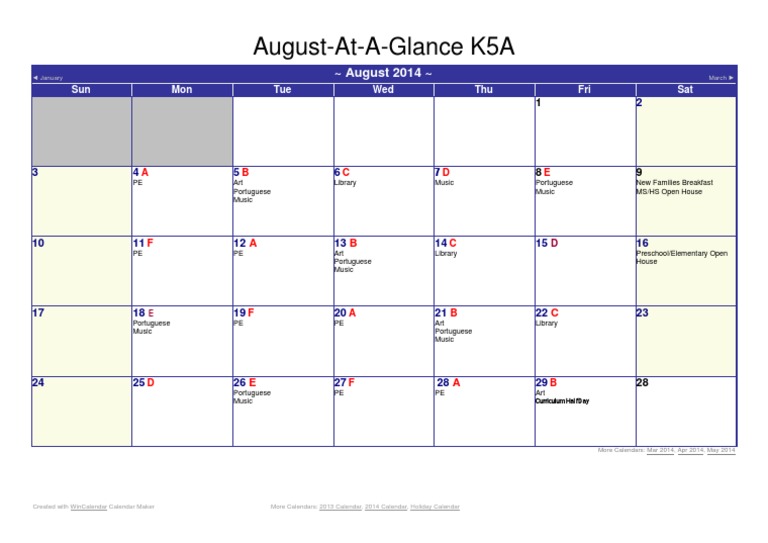 August Calendar Pdf