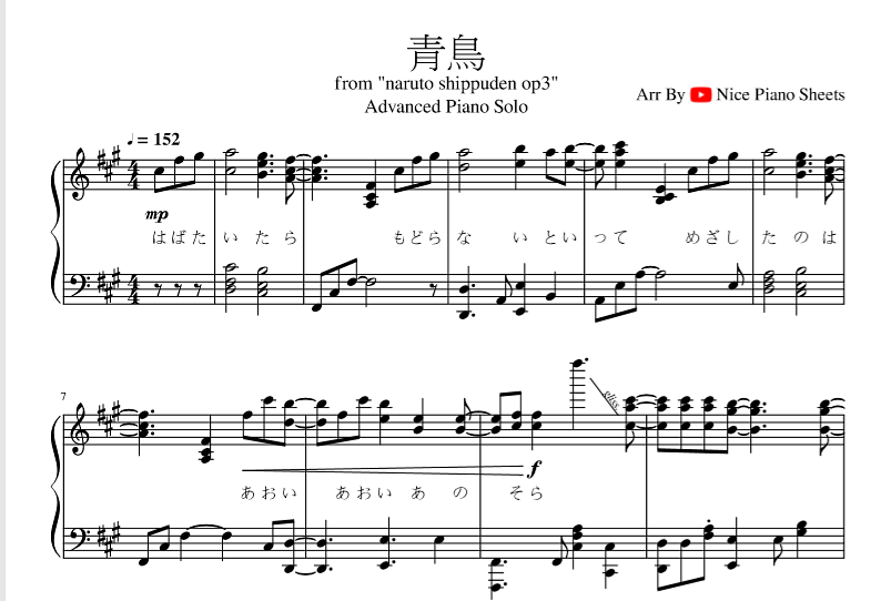 Naruto Shippuuden OP3 Blue Bird|Piano Solo Version(Sheet Music PDF By