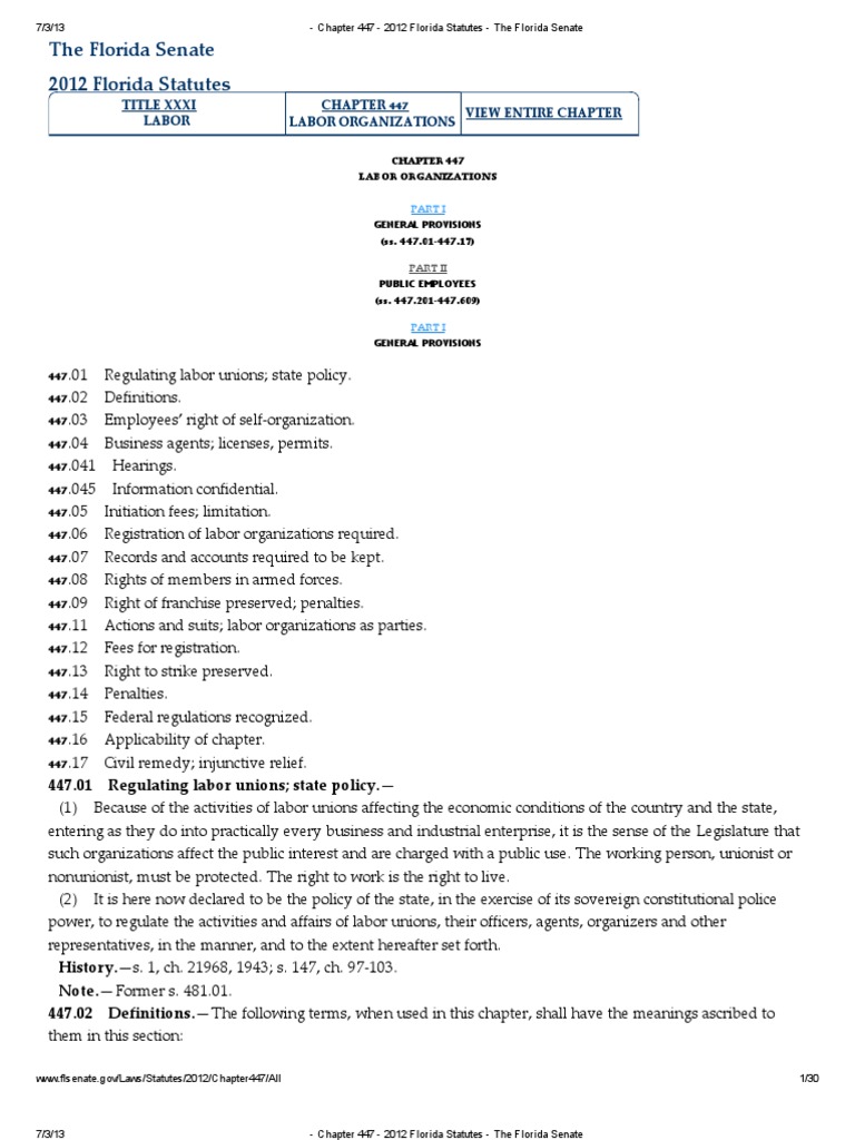 Chapter 447 2012 Florida Statutes The Florida Senate Unfair