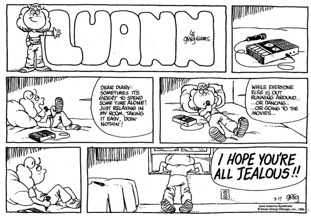 Web view the comic strip for luann by cartoonist greg evans and karen evans created june 10, 2022 available on gocomics.com Web luann is a syndicated newspaper comic strip written and drawn by greg evans and launched by north america syndicate on march 17, 1985. Get your favorite comics delivered to you daily! Launched in 1985, luann has. Web created.