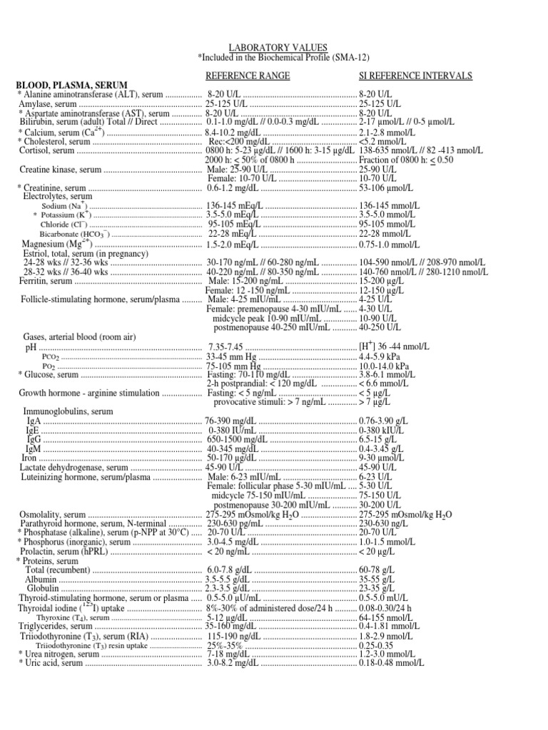Download Normal Lab Values Chart for Free Page 4 FormTemplate